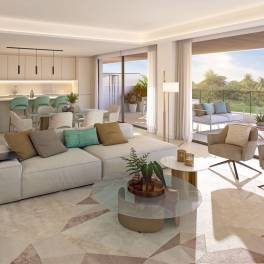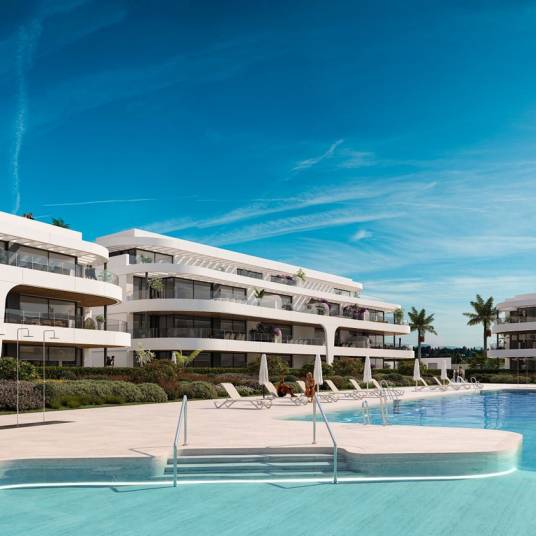 This new residential complex enjoys a privileged location in the heart of the new Golden Mile Triangle near Marbella. The complex comprises just 88 apartments distributed over eight low-rise buildings. The properties are available in configurations of two and three bedrooms, with a selection of duplex and penthouse apartments also for sale. The ground-floor apartments boast a private garden, and some even have a private plunge pool. Additionally, the ground-floor apartments have a lower floor with options to be converted into a cinema room, bodega, games room, or children’s play area. Each property is fitted with a fully equipped kitchen, underfloor heating, as well as hot and cold air conditioning. Residents will be able to enjoy resort-like facilities including an impressive 40-meter pool, a gym, a heated indoor pool, Hammam, and Sauna. Underground parking and a storage room are included in the purchase price.Completion is expected mid 2027Prices from € 625,000 – € 1,425,000Prices for apartments with two bedrooms from € 625,000Prices for apartments with three bedrooms from € 759,000 – € 1,225,000Prices for penthouse apartments with two and three bedrooms from €890,000 – € 1,125,000Photos views and layout may vary and are for illustrative purposes only