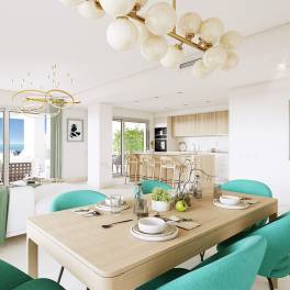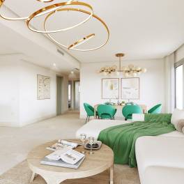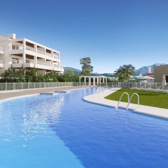 This new residential complex enjoys a privileged location within the private urbanization of La Hacienda del Señorío de Cifuentes, near Benahavís. The development offers a selection of two- and three-bedroom apartments, all boasting panoramic views of the sea and nearby golf courses. The 60 available properties are thoughtfully distributed across five buildings, each containing just 12 apartments and penthouses. All units feature large terraces, fully equipped kitchens, hot and cold air conditioning, and underfloor heating in the bathrooms. The spacious living areas seamlessly extend to the generous terraces through floor-to-ceiling windows, flooding the interiors with natural light and framing spectacular views of the stunning surroundings, including the Atalaya and El Paraiso golf courses, as well as the Bay of Marbella. These properties will be built to the highest standards, with premium materials and an original Mediterranean-style interior design that perfectly complements the prestigious resort setting. Located in one of the most tranquil and secure residential areas on the Costa del Sol, this gated community offers private access, ensuring security and peace of mind for its residents. Residents will also enjoy access to the exclusive facilities of La Hacienda del Señorío de Cifuentes, including four swimming pools, extensive gardens, fountains, and a private bar, all within a secluded area complete with concierge services. Each property comes with an underground parking space, pre-installed with a charging point for electric vehicles, and a storage room.Completion date: March 2026Prices from € 585,000 – € 810,000Prices for apartments with two bedrooms from € 585,000 – € 730,000Prices for apartments with three bedrooms from € 730,000 – € 810,000Photos, views and layout may vary and are for illustrative purposes only