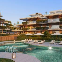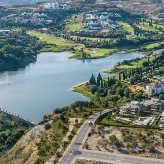 This new residential complex offers an exceptional collection of 21 apartments with two or three bedrooms, situated in the prestigious Los Flamingos area, just moments from the renowned golf course. Designed with modern living in mind, each apartment features an open-plan kitchen that seamlessly connects to spacious living areas, enhanced by large windows that flood the interiors in natural light and provide captivating views of the beautiful landscape, nearby lake, and meticulously maintained green spaces. All apartments boast generous terraces, while ground-floor residences include beautiful private gardens. Each apartment is sold with a fully fitted kitchen, underfloor heating, hot and cold air conditioning, two underground parking spaces, and a storage room. This secure, gated complex offers residents exclusive access to a pool and a fully equipped gym, adding to the appeal of this unique community. With a prime location adjacent to the golf course, just an 8-minute drive to the beach, and only 5 minutes from local restaurants and supermarkets, these apartments make an ideal choice for a second home or investment property.Completion is forecast for Q2/2027Prices from 743,000 – € 1,338,000Prices for apartments with two bedrooms fromPrices for apartments with three bedrooms from € 743,000 – € 758,000Prices for penthouse apartments with three bedrooms from € 1,090,000 – € 1,338,000Photos, views and layout may vary and are for illustrative purposes only