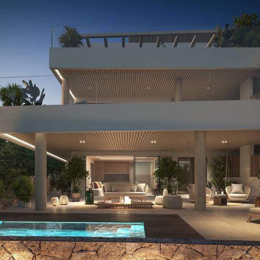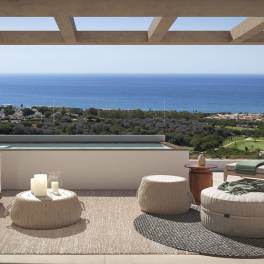 This exclusive, boutique-style residential complex offers 12 elegant apartments and penthouses, thoughtfully distributed across two buildings. The meticulously planned layouts maximise stunning, uninterrupted views of the sea and mountains, creating a seamless connection between indoor and outdoor living. The apartments feature three or four bedrooms, most with en-suite bathrooms, and are designed to provide the utmost comfort and sophistication. Each apartment is sold with a fully fitted kitchen, underfloor heating, hot and cold air-conditioning, two underground parking spaces, and a storage room. The private, gated community, provides a secure environment with beautifully landscaped gardens, a communal pool, a sauna, a gym, and a stylish co-working space. Ideally located, the complex is just a 2-minute walk from the golf course and a 5-minute drive to the beach—perfect for embracing the Mediterranean lifestyle.Completion date beginning 2027Prices for apartments with three bedrooms from € 1,250,000- € 1,475,000Prices for apartments with four bedrooms from € 1,250,000Prices for penthouse apartments with four bedrooms from € 1,600,000Photos, views and layout may vary and are for illustrative purposes only