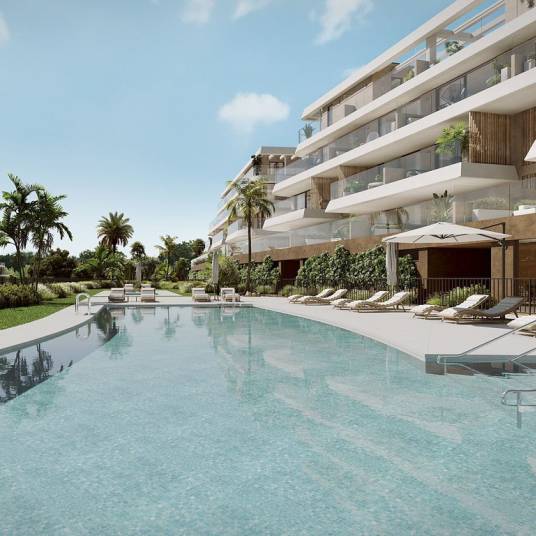 This exceptional new residential complex in Estepona, situated in a breathtaking natural setting, just a short stroll from the beach, offers the ultimate in coastal living. The first phase features 60 meticulously designed apartments with 2- and 3-bedroom configurations, most of which boast spectacular sea views. The apartments for sale offer spacious interiors that extend onto expansive terraces, creating a seamless indoor-outdoor living experience. Thoughtfully designed open-plan layouts include fully fitted kitchens, underfloor heating, and state-of-the-art air conditioning for year-round comfort. Garden apartments feature private green spaces, while penthouses offer stunning solariums with panoramic views of the bay of Estepona and the Marbella mountains. Residents will enjoy exclusive amenities, including a co-working space, gym, yoga room, heated indoor pool, saunas, and a Turkish bath. The complex also features a large outdoor swimming pool and a dedicated children’s pool, ensuring relaxation and recreation for all ages. With a private gated entrance, video surveillance, and digital access technology via an app, this development offers the perfect blend of security and convenience. Ideally located near the beach and well-connected to key destinations, this extraordinary residential complex provides everything you could desire from a home on the Costa del Sol.Completion date January 2027Prices from € 642,075 – €1,318,566Prices for apartments with two bedrooms from € 642,075 – € 758,000Prices for apartments with three bedrooms from € 720,000 – € 935,000Prices for penthouse apartments with two and three bedrooms from € 1,028,000 – € 1,318,566Photos, views and layout may vary and are for illustrative purposes only