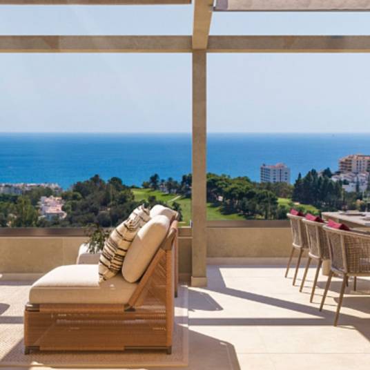 This brand-new residential complex boasts an exceptional location on Torrequebrada Golf, offering breathtaking sea and golf course views from most apartments. The development features a selection of stylish two-bedroom apartments and elegant three-bedroom duplex penthouses, seamlessly blending modern architecture with traditional Andalusian charm.Spread across 13 blocks and three floors, the apartments are thoughtfully designed with open-plan living and dining areas, a fully fitted kitchen, and access to a spacious private terrace. Residents can enjoy an array of premium onsite amenities, including beautifully landscaped communal pools, a clubhouse with a gym, a luxurious spa, and a heated indoor pool.Each property is sold with a private underground parking space and a storage room for added convenience. Located in the prestigious Torrequebrada Golf area of Benalmádena Costa, the complex is just under 2 km from the beach and all essential amenities. Whether you’re seeking a permanent residence or a holiday home on the Costa del Sol, these properties offer an exceptional lifestyle in a prime location.Completion date End 2027Prices from € 430,000 – € 1,150,000Prices for apartments with two bedrooms from € 430,000 – € 590,000Prices for duplex-penthouse apartments with three bedrooms from € 960,000 – € 1,150,000Photos, views and layout may vary and are for illustrative purposes only