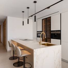 De lichte en stijlvolle interieurs zijn voorzien van designmeubilair, hoogwaardige afwerkingen en een open keuken met Siemens-apparatuur, die naadloos aansluit op de woon- en eetkamer. Een domoticasysteem verhoogt het wooncomfort.