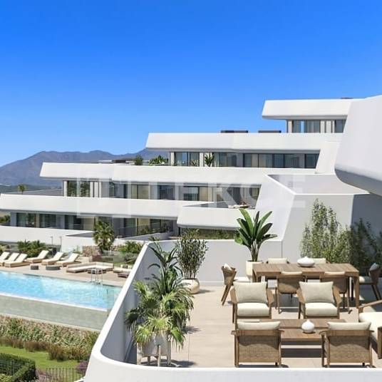 Moderne Mediterrane Appartementen in Casares Malaga met ZeezichtDe appartementen te koop in Casares, Malaga, bieden een unieke kans om te wonen in een van de meest charmante witgekalkte dorpen van Andalusië. Het complex is gelegen in Casares, omringd door de schoonheid van de Middellandse Zee. Ontspan bij het zwembad met een panoramisch uitzicht dat naadloos overgaat in de zee. Casares combineert het authentieke karakter van een traditioneel bergdorp met de rust van het leven aan de kust. De verhoogde ligging biedt een adembenemend uitzicht op de zee en het omliggende landschap, terwijl de kust op slechts enkele minuten afstand ligt, waardoor het een ideale locatie is voor wie op zoek is naar zowel natuurlijke schoonheid als moderne voorzieningen. Het gebied staat ook bekend om zijn golfbanen, uitstekende restaurants en ongerepte stranden. Vanaf de woning is het strand slechts ongeveer 1,5 kilometer verwijderd. Puerto Banús ligt op ongeveer 30 kilometer, Marbella op ongeveer 38 kilometer en de luchthaven van Malaga op ongeveer 93 kilometer.De gemeenschappelijke ruimtes van het complex zijn ontworpen om elegantie en ontspanning uit te stralen. De aangelegde tuinen zijn voorzien van mediterraan geïnspireerde vegetatie en een automatisch irrigatiesysteem, wat het hele jaar door een groene en frisse sfeer garandeert. In het hart van het complex ligt een ruim infinity zwembad met zoutwaterzuivering, dat naadloos overgaat in het uitzicht op zee en verlicht is voor avonden. Een breed solarium kijkt uit op zee en is perfect om te zonnebaden, terwijl een relaxzone uitnodigt tot ontspannende momenten in de buitenlucht. Bewoners profiteren ook van een volledig uitgeruste fitnessruimte en een gemeenschappelijke lounge, beide met direct uitzicht op het zwembad, waardoor ruimtes ontstaan voor ontspanning, wellness en sociale bijeenkomsten.Het interieur onderscheidt zich door het moderne design, de open indeling en de overvloed aan natuurlijk licht. Grote ramen en hoogwaardige afwerkingen versterken het gevoel van ruimte, terwijl de zandkleurige porseleinen vloer tussen binnen- en buitenruimtes een harmonieuze overgang creëert. De keukens zijn volledig uitgerust met hoogwaardige apparatuur en combineren functionaliteit met een strakke esthetiek. De slaapkamers zijn voorzien van inbouwkasten met praktische opbergoplossingen en de badkamers zijn elegant ontworpen met zwevend sanitair, harsen douchebakken en glazen schermen. Comfort is het hele jaar door gegarandeerd met aerothermische systemen, airconditioning via kanalen en uitstekende isolatie. Het algehele ontwerp benadrukt helderheid, strakke lijnen en een tijdloze moderne stijl. AGP-01023