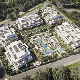 Moderne Appartementen en Penthouses in de Nieuwe Gouden Mijl EsteponaDeze appartementen te koop in Estepona, Spanje, zijn gelegen in de Nieuwe Gouden Mijl. Gelegen tussen Marbella en Estepona, is dit gebied een van de meest gewilde gebieden aan de Costa del Sol. Met zijn prachtige gouden stranden, exclusieve woonontwikkelingen en een ongeëvenaard aanbod aan diensten, biedt deze enclave de perfecte balans tussen luxe, rust en gemak. Dit bloeiende gebied garandeert een hoge waardestijging, waardoor het een veilige en winstgevende keuze is voor beleggers.Deze exclusieve gated community is perfect gelegen tussen beroemde golfbanen. Het zandstrand ligt op minder dan 2 km afstand, de bekende jachthaven Puerto Banús ligt op 10 km afstand en het centrum van Marbella ligt op 17 km afstand. Bovendien biedt het gebied een breed scala aan gourmetrestaurants en prestigieuze strandclubs.Ontworpen met innovatie en aandacht voor detail, biedt dit residentiële complex een naadloze combinatie van hedendaagse architectuur, luxueuze interieurs en premium voorzieningen die comfort en welzijn verhogen. Met state-of-the-art fitnessfaciliteiten en een serene omgeving voor werk en ontspanning, is elk aspect zorgvuldig ontworpen voor een uitzonderlijke levensstijl. Naadloos geïntegreerd met de natuurlijke omgeving, beschikt de ontwikkeling over uitgestrekte terrassen en weelderig aangelegde tuinen, wat een perfecte balans biedt tussen privacy, rust en een diepe verbinding met de natuur.Deze ontwikkeling biedt appartementen met privétuinen of penthouses met daktuinen, die adembenemende uitzichten bieden op zee, bergen en golfvallei. Binnen deze ruime appartementen is elk ontwerpdetail en architectonisch element zorgvuldig ontworpen om een uitzonderlijke woonervaring te bieden. Met geavanceerde hometechnologieën en prachtig aangelegde tuinen, weerspiegelt elk aspect een toewijding aan kwaliteit, van strakke, hedendaagse gevels tot luxueuze interieurs. Elk verblijf omvat 1 of 2 privéparkeerplaatsen. AGP-00956