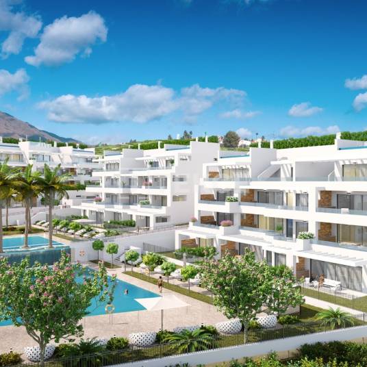 Ruime Appartementen met Zeezicht in Prestigieuze Wijk in EsteponaDe appartementen bevinden zich in een complex in Estepona, een van de meest populaire woonwijken aan de Costa del Sol. Estepona is een wereldwijd bekend toeristenoord gelegen ten westen van andere populaire gebieden zoals Marbella en Banus. Estepona biedt een mild klimaat met meer dan 320 zonnige dagen, zandstranden, recreatiecentra, moderne ziekenhuizen, internationale scholen en meer.De appartementen in Estepona die te koop zijn, bevinden zich op slechts 150 meter van het winkelcentrum en de golfbanen, op 10 minuten loopafstand van het strand en de boulevard, op 500 meter van het ziekenhuis van Estepona en het commerciële gebied met supermarkten, bars, restaurants en apotheken, 15 minuten rijden van Marbella, Puerto Banus en Sotogrande, en 1 uur rijden van de luchthaven van Malaga.De appartementen zijn gelegen in een complex bestaande uit 28 appartementen en 7 penthouses. De meeste appartementen en penthouses in het complex hebben een uniek zeezicht. Het complex heeft aangelegde tuinen, een zwembad met een waterval voor kinderen en volwassenen, een volledig uitgeruste fitnessruimte en een spa.De stijlvolle appartementen in het complex hebben een designmix van mediterrane esthetiek met Scandinavische invloeden. De appartementen hebben grote terrassen, buitenkeukens bij de barbecueplaats en ligweide op elk terras. De terrasvensters van de appartementen hebben afmetingen van ruim 7 meter lang en 2,75 meter hoog. De appartementen hebben grote keukens met grote opslagcapaciteit en elektrische apparaten. Alle appartementen beschikken over 2 parkeerplaatsen in de ondergelegen parkeerkelder en een eigen berging. AGP-00556