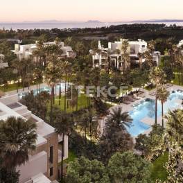Appartementen in Exclusief Complex met Grote Tropische Tuinen in EsteponaDe appartementen met ruime gebruiksruimtes zijn gelegen in New Golden Mile, Estepona in Malaga. Het gebied biedt gemakkelijke toegangsmogelijkheden tot de hele Costa del Sol-regio. Het gebied is de thuisbasis van Gibraltar Bay en vele voorzieningen, waaronder ziekenhuizen, scholen en winkels. Estepona staat bekend om zijn natuurlijke en groene omgeving.De appartementen te koop in Estepona bevinden zich op slechts 500 meter van het strand, 5 minuten van het stadscentrum, 5 km van de golfbaan Los Flamingos en Selwo Aventura Zoo, 73 km van de luchthaven van Malaga en 2 uur rijden van Granada, Cordoba, en Sevilla.De stijlvolle appartementen bevinden zich in een complex met uitzicht op zee en 27.000 m² aangelegde tuinen. Het complex heeft veel functies en diensten, waaronder 24/7 beveiliging, conciërge, beveiligingscamera’s, een clubhuis met loungebar, restaurant, SPA, sauna, fitness, zwembaden, kinderbad, binnen- en buitenparkeerplaatsen, gemeenschappelijke tuinen en een lift . Het complex biedt 1 of 2 parkeerplaatsen voor elk appartement.De appartementen zijn uitgerust met een smart home-systeem, tv-satellietsysteem, vloerverwarming, internetaansluiting, airconditioning, en-suite badkamer, kleedkamer, berging, ligweide, keukenapparatuur, douche, bad, barbecue en witte goederen. AGP-00024