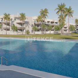 Appartementen in Vélez-Málaga op loopafstand van het strandVélez-Málaga ligt in het zuidelijke deel van de Costa del Sol en is een paradijselijk gebied. De belangrijkste stad in Vélez-Málaga is Axarquia. Met verschillende pittoreske stranden is Vélez-Málaga een belangrijke woonwijk en een toeristisch centrum geworden. Vélez-Málaga is ook een buurstad van de staat Granada.De appartementen in Vélez-Málaga die te koop zijn, liggen in een wooncomplex met een prestigieuze locatie op een steenworp afstand van het strand. Het complex ligt op slechts 40 km van de internationale luchthaven van Málaga en op 30 minuten rijden van het stadscentrum van Málaga.Het wooncomplex biedt de bewoners een schilderachtig uitzicht op zee. Het project is verrijkt met 2 grote zwembaden, een speciaal ontworpen gemeenschappelijke tuin versierd met palmbomen en 2 paddle-tennisbanen.De appartementen in Vélez-Málaga bieden verschillende types met 1, 2 of 3 slaapkamers. Elk appartement heeft parkeerplaatsen en bergingen. De appartementen zijn uitgerust met badkamermeubels, spiegels en douchecabines van de hoogste kwaliteit. AGP-00638