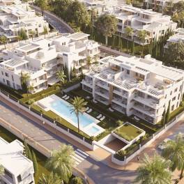 Gelegen in de prachtige stad Estepona, biedt deze residentie een selectie van 64 woningen, waaronder appartementen, begane grond en penthouses. Ontworpen voor degenen die op zoek zijn naar een moderne en comfortabele levensstijl, heeft elke woning een indrukwekkend zeezicht, wat een vleugje sereniteit en schoonheid toevoegt aan het dagelijks leven. De verscheidenheid aan typologieën zorgt ervoor dat er een optie is voor elke behoefte, van gezellige ruimtes tot ruime gezinswoningen. Deze enclave is ideaal voor degenen die willen genieten van de rust van de kustomgeving zonder in te boeten op stedelijke gemakken.BUITENRUIMTESDe buitenruimtes van deze residentie in Estepona zijn ontworpen om optimaal te genieten van het mediterrane klimaat. De woningen beschikken over privéterrassen, perfect om te genieten van het zeezicht en de frisse lucht. Bovendien hebben sommige woningen een solarium, dat extra ruimte biedt voor ontspanning en buitenentertainment. De privé tuinen, beschikbaar in bepaalde typologieën, bieden een oase van rust en een ideale ruimte voor buitenactiviteiten. Het exterieurontwerp wordt aangevuld met hoogwaardige materialen, zoals porseleinen vloeren, die duurzaamheid en stijl garanderen.BINNENRUIMTESHet interieur van de woningen is ontworpen om maximaal comfort en functionaliteit te bieden. De indelingsopties omvatten eigendommen met 2, 3 en 4 slaapkamers, elk met 2, 3 of 4 badkamers, aangepast aan verschillende levensstijlen en gezinsbehoeften. De keukens zijn uitgerust met moderne apparatuur en het airconditioningsysteem zorgt het hele jaar door voor een aangename sfeer. Ingebouwde kasten bieden veel opbergruimte, terwijl vloerverwarming een vleugje luxe en comfort toevoegt. Elk detail is zorgvuldig overwogen om een gastvrij en efficiënt huis te creëren.GEMEENSCHAPPELIJKE RUIMTESDe gemeenschappelijke ruimtes van de residentie zijn ontworpen om een gevoel van gemeenschap te bevorderen en de bewoners een scala aan diensten en voorzieningen te bieden. De gemeenschappelijke tuinen bieden een groene en ontspannende omgeving, ideaal voor rustige wandelingen of buitenactiviteiten. Het gemeenschappelijke zwembad is perfect om af te koelen tijdens de warme zomerdagen, terwijl de gemeenschappelijke garage ervoor zorgt dat parkeren voor alle bewoners gemakkelijk en veilig is. Deze kenmerken maken de residentie tot een ideale plek om te genieten van een comfortabel en sociaal leven.