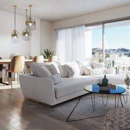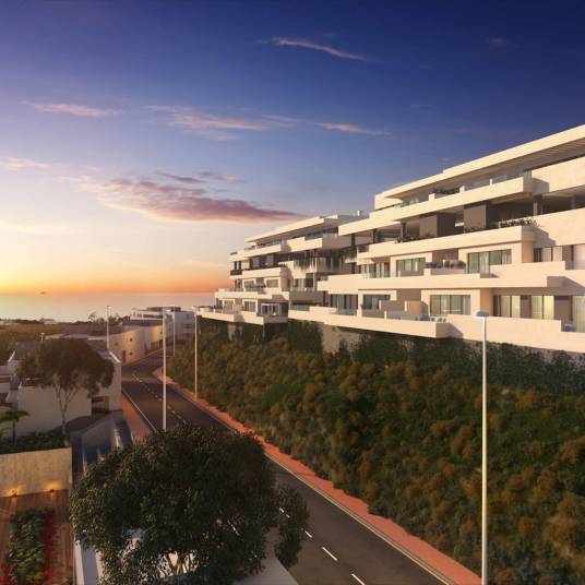 Gelegen in de charmante plaats La Cala de Mijas, biedt dit exclusieve wooncomplex een beperkte selectie van 16 eigendommen, waaronder appartementen en opties op de begane grond. Met uitzicht op zee is elke woning ontworpen om comfort en elegantie te maximaliseren, en biedt een ideale omgeving om van het kustleven te genieten. De nabijheid van de zee, op slechts 1 km, maakt het mogelijk om binnen enkele minuten van het strand te genieten, terwijl de luchthaven op 50 km afstand ligt, wat de toegang tot internationale verbindingen vergemakkelijkt. Deze locatie combineert de rust van de kust met het gemak van nabijheid van diensten en recreatieve activiteiten.BUITENRUIMTESDe eigendommen beschikken over privéterrassen die een perfecte ruimte bieden om te ontspannen en van het uitzicht op zee te genieten. Bovendien hebben sommige woningen een privézwembad, ideaal om af te koelen op warme dagen. Het exterieurontwerp wordt aangevuld met hoogwaardige materialen, zoals porseleinen tegels, die duurzaamheid en stijl garanderen. De moderne architectuur integreert harmonieus met de natuurlijke omgeving, waardoor een serene en verfijnde sfeer ontstaat.BINNENRUIMTESHet interieur van de woningen is ontworpen om maximaal comfort en functionaliteit te bieden. De appartementen en opties op de begane grond zijn beschikbaar met een of twee slaapkamers en een of twee badkamers, aangepast aan verschillende gezinsbehoeften. De woningen zijn uitgerust met vloerverwarming, ingebouwde kasten en een domoticasysteem dat het beheer van verschillende functies in huis vergemakkelijkt. Bovendien zijn ze voorzien van moderne apparaten en een video-intercom voor extra veiligheid en comfort.GEMEENSCHAPPELIJKE RUIMTESHet wooncomplex biedt een verscheidenheid aan gemeenschappelijke ruimtes die de woonervaring van de bewoners verrijken. Onder hen bevinden zich ruime groene gebieden die een ontspannende omgeving bieden. Bewoners kunnen genieten van een gemeenschappelijk zwembad, perfect om te socializen en te genieten van het mediterrane klimaat. Bovendien beschikt het complex over een gemeenschappelijke fitnessruimte, ideaal om een actieve levensstijl te behouden zonder het huis te verlaten. Voor extra gemak is er een gemeenschappelijke garage en zijn er parkeermogelijkheden beschikbaar, waardoor toegang en veiligheid voor alle bewoners prioriteit hebben.