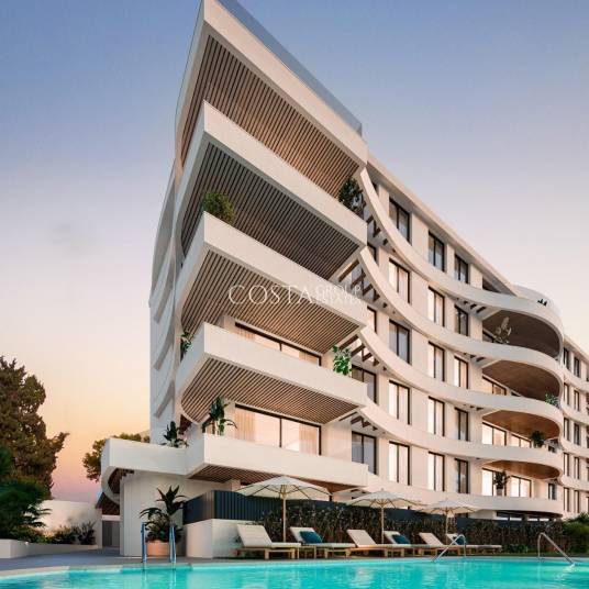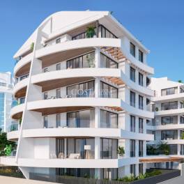 Modern wooncomplex met 33 luxe appartementen met 1, 2 en 3 slaapkamers, geïnspireerd op de vorm van een schip. De golvende gevel doet denken aan golven en maakt de configuratie van terrassen mogelijk die open zijn naar de zee, badend in de zeebries.