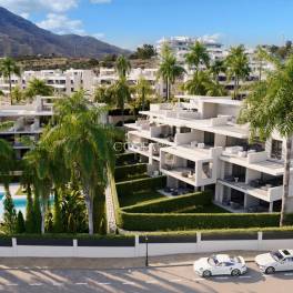 Gelegen in de charmante plaats Estepona, biedt dit wooncomplex een selectie van 35 eigendommen, waaronder appartementen en benedenverdiepingen. Deze bevoorrechte locatie ligt op slechts 1 km van de zee, waardoor u kunt genieten van de zeebries en een benijdenswaardige kustomgeving. Bovendien vergemakkelijkt de nabijheid van de luchthaven, op slechts 40 km, de toegang en mobiliteit voor degenen die een snelle verbinding met andere steden zoeken. De woningen zijn ontworpen om maximaal comfort en functionaliteit te bieden, aangepast aan de behoeften van elk gezin.BUITENRUIMTESDe buitenruimtes van deze eigendommen zijn ontworpen om optimaal te genieten van het mediterrane klimaat. Elke woning heeft een eigen tuin, ideaal voor ontspannende momenten in de buitenlucht of voor het genieten van familiebijeenkomsten. Bovendien bieden de ruime terrassen extra ruimte om van het uitzicht te genieten en buiten te dineren. Voor degenen die op zoek zijn naar een exclusievere ruimte, is het solarium de perfecte plek om in alle privacy te zonnebaden. De nabijheid van de zee, op slechts 1 km, maakt het mogelijk om te genieten van strandwandelingen en watersportactiviteiten.BINNENRUIMTESHet interieur van deze woningen is ontworpen met een focus op comfort en moderniteit. De appartementen en benedenverdiepingen bieden opties van 2 of 3 slaapkamers en 2 badkamers, aangepast aan verschillende gezinsbehoeften. Vloerverwarming zorgt voor een warme en gezellige sfeer tijdens de koudere maanden. De porseleinen tegelvloeren geven een vleugje elegantie en zijn gemakkelijk te onderhouden. De toevoeging van moderne apparaten en een geavanceerd domoticasysteem vergemakkelijkt het dagelijks leven, terwijl de inbouwkasten efficiënte opbergruimte bieden.GEMEENSCHAPPELIJKE RUIMTESDeze residentie beschikt over aantrekkelijke gemeenschappelijke ruimtes, waaronder een gemeenschappelijk zwembad, perfect om af te koelen tijdens de warme zomerdagen. Bovendien biedt de gemeenschappelijke garage een veilige plek voor het parkeren van voertuigen, wat een extra niveau van comfort en veiligheid voor de bewoners toevoegt.