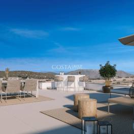 Gelegen in de prestigieuze wijk Buenas Noches, biedt deze exclusieve residentie een beperkte selectie van zeven eigendommen, waaronder appartementen, begane grond en penthouses. Elke woning is ontworpen om optimaal te profiteren van het adembenemende uitzicht op zee, op slechts 4 km van de kust. De combinatie van de gunstige locatie en moderne kenmerken maakt deze residentie een ideale keuze voor wie op zoek is naar een huis in een serene en goed verbonden omgeving.BUITENRUIMTESDe buitenruimtes van deze residentie zijn ontworpen om een ontspannen en comfortabel leven te bieden. Elke woning beschikt over een privéterras, perfect om te genieten van het uitzicht op zee en het mediterrane klimaat. Bovendien hebben de begane grond woningen directe toegang tot de gemeenschappelijke tuinen, wat extra ruimte biedt voor buitenrecreatie. De aanwezigheid van een solarium in de penthouses biedt een exclusieve ruimte voor ontspanning en entertainment.BINNENRUIMTESDe woningen zijn uitgerust met tegelvloeren die een moderne uitstraling en eenvoudig onderhoud bieden. Alle eigendommen zijn voorzien van airconditioning en apparaten, wat comfort en functionaliteit garandeert. Ingebouwde kasten bieden efficiënte opslag, terwijl de indeling van twee slaapkamers en twee badkamers een optimale ruimte biedt voor gezinnen of koppels. De toevoeging van een privé garage biedt een extra niveau van comfort en veiligheid.GEMEENSCHAPPELIJKE RUIMTESDe residentie beschikt over verschillende gemeenschappelijke ruimtes die zijn ontworpen om de levenskwaliteit van de bewoners te verbeteren. Onder hen zijn ruime aangelegde gebieden die een groene en rustige omgeving bieden. Bewoners kunnen genieten van een gemeenschappelijk zwembad, ideaal om te ontspannen en te socializen. Bovendien is de gemeenschappelijke fitnessruimte beschikbaar voor degenen die een actieve levensstijl willen behouden. De aanwezigheid van een garage en gemeenschappelijke parkeerplaats zorgt ervoor dat parkeren nooit een probleem is.