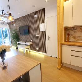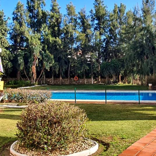 Cozy ground floor corner apartment for sale in Doña Pilar, completely renovated! This property offers a modern open plan design with fully equipped kitchen, lounge dining with access to the terrace, 2 bedroom, and one bathroom with large italian walk in shower. The apartment offr new plumbing, new electric, new floor, new doors, spots lights, A/C, double glazed windows, all very well presented. The terrace is facing the lovely pool area with plenty of place to eat, sunbathe, and with grass all around. It is walking distance to transport and five minutes driving to the Fuengirola beaches. Ideal as a holiday place for a family!