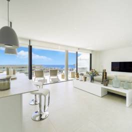 Reduced from 795.000€ for a quick sale! Very special and unique top floor apartment, elegant and tastefully furnished with beautiful Italian furniture. 2 bedrooms, 2 bathrooms, one of them en suite, with heated floors and 2 spacious terraces with breathtaking views of the sea and the mountains, as well as the 50m long pool – unique in all Higuerón West! Plus the views of sunrise and sunset from both terraces! Many extras and all appliances, largest living room compared with other phases in Higuerón West. 2 parking places in underground garage and one storage behind the parking and electric charger. Hilton 5* SPA and Higuerón Sport Club is just across the road. In the common areas we find 2 infinity pools and a co-working space.