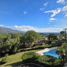 This beautiful corner apartment is nestled among pine trees, offering a truly tranquil setting while being very close to the heart of Nueva Andalucía just minutes from prestigious golf courses, Puerto Banús, and Marbella’s top restaurants and boutiques. From the moment you enter, the panoramic views of the Mediterranean Sea and La Concha mountain take center stage, creating an unmatched sense of home. A private path provides direct access to the property, and the fantastic outdoor sheltered spaces allow you to fully enjoy Costa del Sol’s weather all year round.