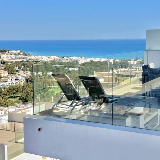 This modern luxury apartment for sale offers; spacious lounge/ dining area with large open plan modern white high-gloss fitted kitchen. With fitted oven, hob, hood, fridge freezer, microwave and dishwasher. The main living area has patio doors and 2 windows to a large (partly covered) terrace area with beautiful La Cala de Mijas sea views, ideal for both relaxing & entertaining. This beautiful apartment has 3 large double bedrooms with fitted wardrobes, two of which have patio doors to a second good size sunny terrace again with with beautiful La Cala de Mijas sea views. The Master bedroom has a walk in wardrobe & luxury en-suite shower room. There is also a 2nd family shower room. Hot & cold air-con, underfloor heating in bathrooms, private parking space and storage room. Interiors have a beautiful timeless design, with high quality finishes and feature neutral colour palettes.