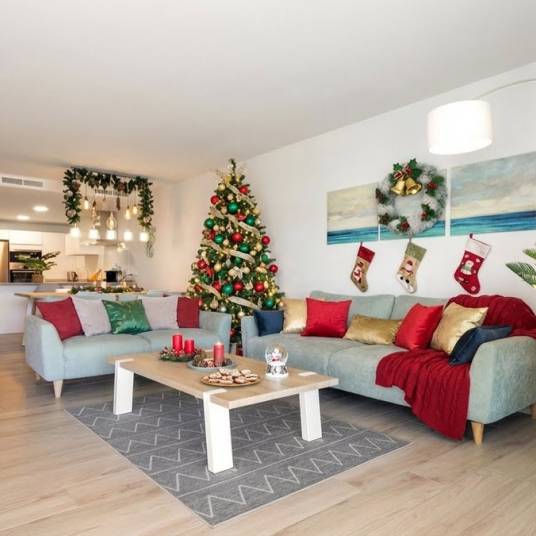 The property features two comfortable double bedrooms with fitted wardrobes and two generous bathrooms, one of which is en-suite. Every detail has been carefully maintained, making the apartment move-in ready. Modern comforts include air conditioning, electric blinds, and solar panels that add an eco-friendly touch. A private parking space and storage room are also included.