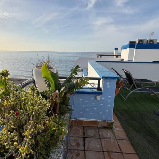 Frontline top floor duplex apartment located on the beach of El Peñoncillo in Torrox-Costa with direct access to the sea.