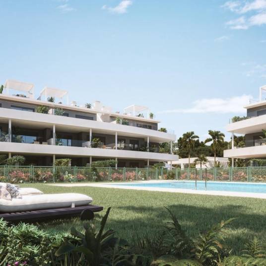 Nieuwbouw wooncomplex met appartementen met 2 en 3 slaapkamers in Estepona waar je kunt genieten van prachtig uitzicht op zee.