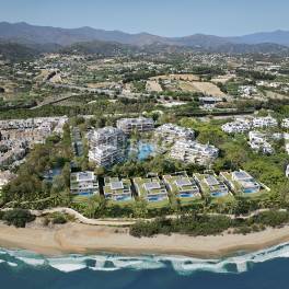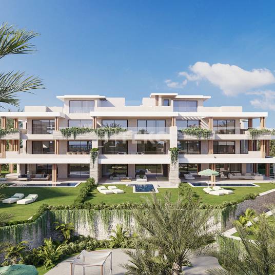 Appartementen met Zeezicht en Terrassen in een Complex in Estepona, SpanjeEstepona is een elegante en gastvrije stad aan de westelijke rand van de Costa del Sol, waar traditionele Andalusische charme samenkomt met een moderne levensstijl. Bekend om zijn lange zandstranden, een prachtig gerestaureerde oude binnenstad en een levendige jachthaven, biedt Estepona het hele jaar door een ontspannen maar verfijnde manier van leven. Met boomrijke promenades, ambachtelijke boetieks en een bruisende culinaire scene ontstaat er een levendige gemeenschap, terwijl culturele evenementen en openluchtmarkten het dagelijks leven verrijken.Appartementen te koop in Estepona, Spanje bevinden zich op een toplocatie. De dichtstbijzijnde stranden liggen op ongeveer 4 km afstand, ideaal voor ochtendwandelingen langs de Middellandse Zee of ontspannen middagen aan zee. Het glamourvolle Puerto Banús ligt op ongeveer 17 km langs de kust, het bruisende centrum van Marbella bevindt zich op circa 30 km naar het oosten, en de luchthaven van Málaga ligt op ongeveer 85 km afstand, met uitstekende verbindingen naar bestemmingen in heel Europa.De gemeenschappelijke ruimtes zijn ontworpen om rust uit te stralen en harmonieus op te gaan in het omliggende landschap. In het hart van het complex zorgen aangelegde tuinen voor een serene sfeer, terwijl het zwembad een verfrissend middelpunt vormt voor ontspanning en sociale momenten. De gebouwen zijn zo gepositioneerd dat privacy en onbelemmerd zeezicht worden gegarandeerd, en de indeling bevordert een gevoel van kalmte, zelfs in de gedeelde ruimtes. Dankzij een doordachte planning voelen zelfs de appartementen op de begane grond privé aan ten opzichte van deze gemeenschappelijke zones.Binnen is elk appartement opgezet als een waar toevluchtsoord voor de ziel, waar ruimte en vloeiende overgangen centraal staan. Het licht stroomt vrij zonder barrières en versterkt het gevoel van openheid in de leefruimtes. De keukens zijn op natuurlijke wijze geïntegreerd in het geheel en afgewerkt met materialen die getuigen van precisie en oog voor detail. De royale terrassen fungeren als openluchtwoonkamers en nodigen bewoners uit om te genieten van het milde klimaat van de Costa del Sol, alsof de zomer nooit echt eindigt. AGP-01056