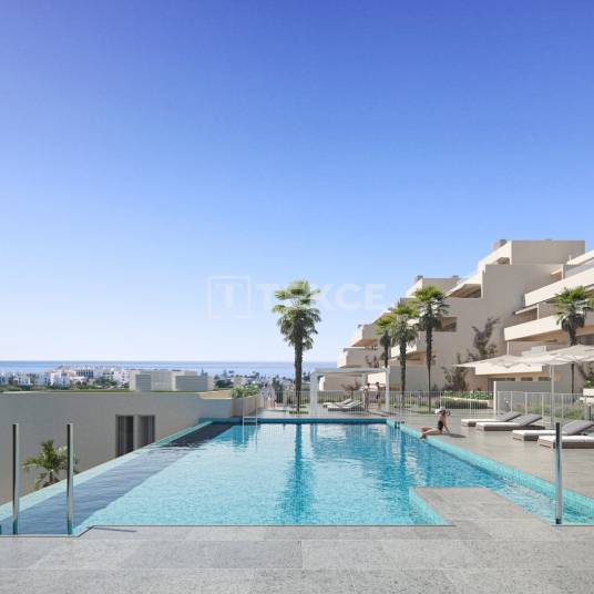 Appartementen in een Luxe Complex in Estepona aan Zee met Schilderachtig UitzichtDe appartementen liggen in Estepona, Costa del Sol. Estepona is een prachtige kustplaats in de buurt van Marbella en Manilva. Estepona biedt het hele jaar door zon met een gemiddelde jaartemperatuur van 19°C. Het gebied biedt ook een breed scala aan sociale voorzieningen en sportactiviteiten. Er zijn 70 golfresorts van wereldklasse in de omgeving die de hitte van golfliefhebbers rechtstreeks stelen.Het complex ligt op een ideale locatie in Estepona en biedt gemakkelijke toegang tot allerlei sociale en dagelijkse voorzieningen: supermarkten, winkels, restaurants, cafés en bars liggen binnen handbereik. Het strand ligt op slechts 800 m van het complex. Het appartementencomplex ligt op 10 minuten rijden van het centrum van Estepona, 25 km van Puerto Banus en 35 km van Marbella City Center.De appartementen te koop in Estepona liggen in een complex met enorm veel voorzieningen. Er zijn grote aangelegde tuinen met veel groen in het complex. Er is ook een overloopzwembad, fitnessruimte, sociale club, speeltuin, sauna en parkeerplaats samen met een Turks bad.De appartementen met een zuidgevel bieden de bewoners een prachtig uitzicht op zee. Het grote terras van het complex heeft een gemeenschappelijk overloopzwembad met prachtig uitzicht. De keukens in de appartementen zijn volledig ingericht met de nodige apparatuur. AGP-00604