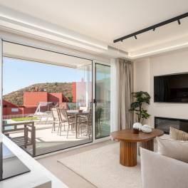 Bayview Hills collection is a spectacular development with unbeatable views in the Tamango Hills area just in between Nerja and Torrox. We have the best climate on the coast and really good views of both mountains and the Mediterranean Sea in front. The development has Infinity pool, heated jacuzzi, indoor pool, Sauna, Turkish steam sauna, Padel court, Gym, barbeque area just to mention a few of the extras that make this a one of its kind here in the area. Parking and storage are of course included in the price too. This 2-bed fully furnished apartment is the only unit of this kind with a private pool and magnificent unobstructed views on the 38m2 terrace of both sea and mountain. Call us today to book a viewing or a video presentation!