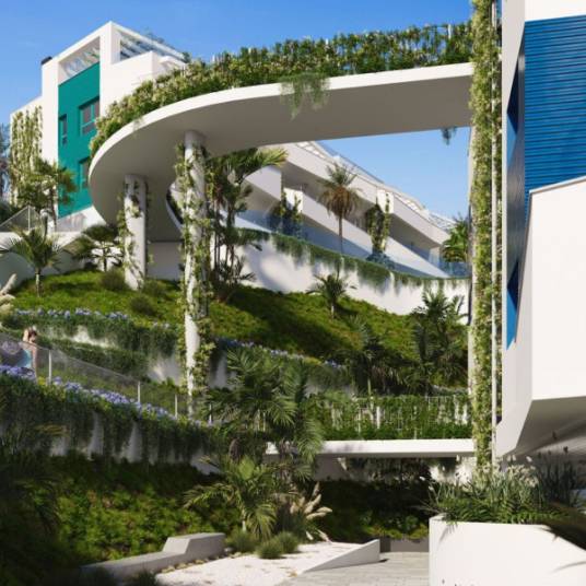 These carefully designed apartments, available in 2 or 3 bedrooms, are positioned to capture the most coveted South-West orientation of the Costa del Sol. Privacy is prioritized, with thoughtfully incorporated hanging gardens cascading down the facades, creating green walls and offering seamless integration with the natural surroundings.