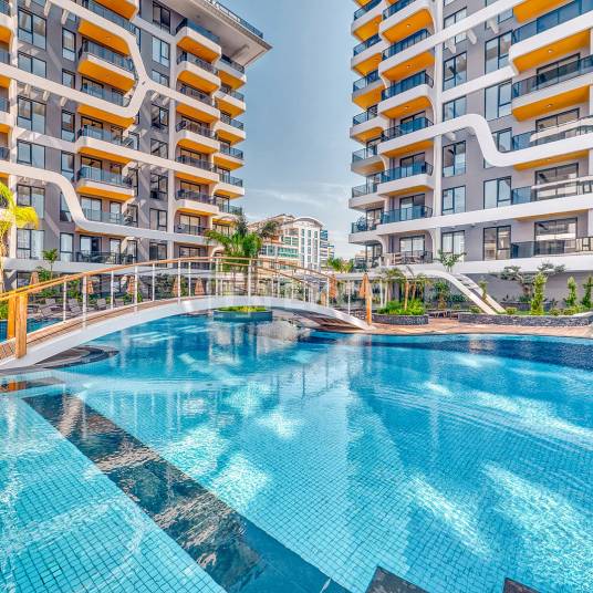 Appartementen met Zeezicht en Slimme Thuis Systemen in AlanyaDe chique appartementen zijn gelegen in de Tosmur buurt van Alanya, Antalya. Alanya is een prestigieuze leefruimte en investeringscentrum met kristalhelder zeewater, een levendig toeristisch centrum en ontwikkelde handel. Tosmur biedt gemakkelijke toegang tot sociale voorzieningen. Het is een ideale woon- en vakantieruimte met zijn stranden, restaurants en cafés.De appartementen te koop in Alanya liggen op 300 m van het strand, 300 m van de ringweg, 400 m van Dimçayı, 5 km van Alanya centrum, 35 km van Gazipaşa Luchthaven, en 120 m van Antalya Luchthaven.Het 3 blokken tellende project beschikt over percelen van in totaal 3.378 m². Dankzij de verhoogde ligging hebben de appartementen boven de 4e verdieping uitzicht op zee. Het project is verrijkt met binnen- en buitenzwembaden, binnen- en buitenparkeerplaatsen, fietsenstallingen, een kinderspeelplaats, een generator, een aangelegde tuin, bewakingsdienst, beveiligingscamera’s, een bioscoopzaal, een jacuzzi, een fitnesscentrum, een speelkamer, gemeenschappelijke ruimtes, SPA, Turks bad opslagruimtes, een biljart en tafeltennis. Elk blok heeft dubbele liften.Het project biedt middenverdieping en penthouse-duplex opties. Elke flat is voorzien van vloerverwarming in de badkamers, intercom, satelliet-tv, internetverbinding, smart home-systeem, waterfilter, keramische vloerbedekking en een ruimte voor de condensor. AYT-03240