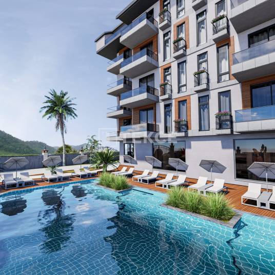 Appartementen te Koop in een Complex met Uitzicht op de Stad en Zwembad in Oba AlanyaAppartementen te koop in Alanya zijn gelegen in Oba. Alanya is een van de meest ideale locaties voor wonen, investeren en vakantie, dankzij het milde klimaat. Alanya herbergt nieuwe residentiële projecten in de Oba-regio. Oba is een van de favoriete regio’s dankzij de ligging dicht bij voorzieningen zoals het ziekenhuis en het gerechtsgebouw.Gunstig gelegen appartementen liggen op 850 meter van het ziekenhuis, 1,9 km van het strand, 5 km van het centrum van Alanya en 35 km van de luchthaven Gazipaşa-Alanya.Het complex bestaat uit één blok met vijf verdiepingen en biedt appartementen op de middelste verdieping met één slaapkamer en duplex penthouses met twee slaapkamers. Het beschikt over een buitenzwembad, een gemeenschappelijke tuin, een sauna, een Turks bad, een fitnesscentrum, een kinderspeelplaats, een generator en een lift.Moderne appartementen worden opgeleverd met satelliet-tv, vloerbedekking, muurverf, elektrische en waterinstallaties, ramen, binnen- en buitendeuren, badkamer- en keukenkasten, badkamer- en keukenwerkbladen. AYT-03447