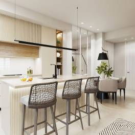 Er zijn 6 blokken van 7 appartementen per blok, een totaal van 42 woningen met gemeenschappelijk zwembad, parkeerplaats en berging. De appartementen zijn verdeeld over begane grond met tuin, eerste en tweede verdieping met terras en derde verdieping met privé solarium, met twee woningen op elke verdieping en een lift om van het ene naar het andere niveau te gaan.