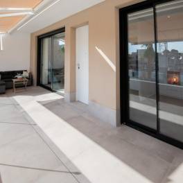 Een luxe penthouse met een groot terras aan de living room en een groot solarium over heel de vlakte van de woning.
