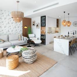 Inbegrepen in alle Bungalows : – witgoed Bosch of Siemens – overdekte ruimte op het terras – Airco – interne & externe verlichting ( led ) – volledig uitgeruste keuken – externe geluidsluidsprekers – aerothermische boiler – volledig uitgeruste badkamers – alarminstallatie – toiletten worden opgehangen – vloerverwarming in 2 badkamers – automatische deur voor de auto (BEGANE GROND) – ingebouwde badkraan – douches met thermostatische kranen – aparte wanden van ca. 1,80m voor privacy rond de tuin (BEGANE GROND) – porcelanico vloer 90×90 cm interieur & exterieur – design kasten in de slaapkamers inbegrepen alleen in de Bungalows op de bovenste verdieping : – gesloten zomerkeuken – solarium – gesloten berging – design metalen pergola – kunstgras in solarium – douche warm en koud in solarium – electrische barbeque – aparte wanden in solarium ca. 1,80m – pre-installatie voor jacuzzi – toilet in solarium Gemeenschappelijke ruimtes – Tuingedeelte met kunstgras