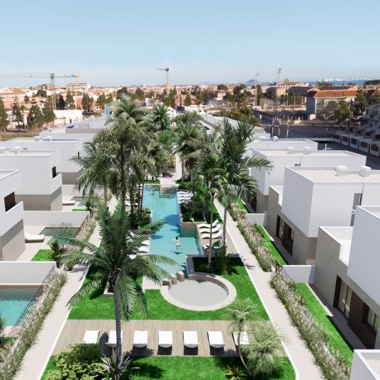 Kenmerken van het project:✅ Nieuwbouwproject van bungalowappartementen:• 3 ruime slaapkamers • 2 moderne badkamers • Gemeenschappelijk zwembad • Begane grond Privétuin • Solarium (bovenste verdieping)• Ondergrondse parkeergarage en berging inbegrepen