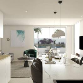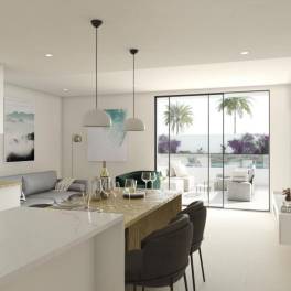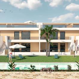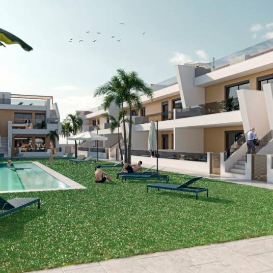 Deze prachtige en luxueus afgewerkte appartementen bevinden zich in San Pedro del Pinatar en kennen een uiterst centrale ligging. Bovendien bevindt het project zich in een mooie en moderne wijk die op slechts 200m van het stadscentrum en op 900m van de mooie jachthaven en stranden is gelegen!Dit hypermoderne en volledig uitgeruste project bestaat uit zowel gelijkvloerse appartementen alsook uit penthouses. De gelijkvloerse appartementen kennen alleen een privatieve tuin/terras van 70 m² verdeeld over de voor en achterzijde van het appartement. De penthouse appartementen zijn allen voorzien van een uniek solarium van maar liefst 75 m². Beide type appartementen beschikken over een ruime leefruimte met open leefkeuken en over drie slaapkamers en twee badkamers.De appartementen worden allen standaard voorzien van de keukentoestellen (Bosch of Siemens), LED binnen- en buitenverlichting, vloerverwarming in de twee badkamers, ingebouwde luidsprekers op het terras, alarm en airco. De penthouse appartementen genieten standaard van een volledig uitgeruste buitenkeuken op het dakterras inclusief elektrische kookplaat, ingebouwde ijskast, lavabo, een ruim werkblad en een elektrisch rolgordijn om de keuken volledig af te sluiten. Ook een bijkomende berging van +- 5 m² in standaard in de prijs inbegrepen bij de penthouse appartementen.Alle appartementen beschikken over een eigen parkeerplaats.