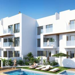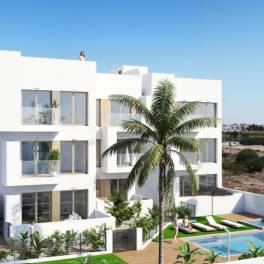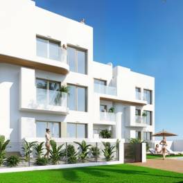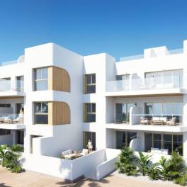Nieuw exclusief wooncomplex met 7 luxe villa’s en 18 appartementen met 2 of 3 slaapkamers, 2 badkamers , gelegen in een bevoorrechte omgeving: tussen de golfbaan en de Mar Menor.