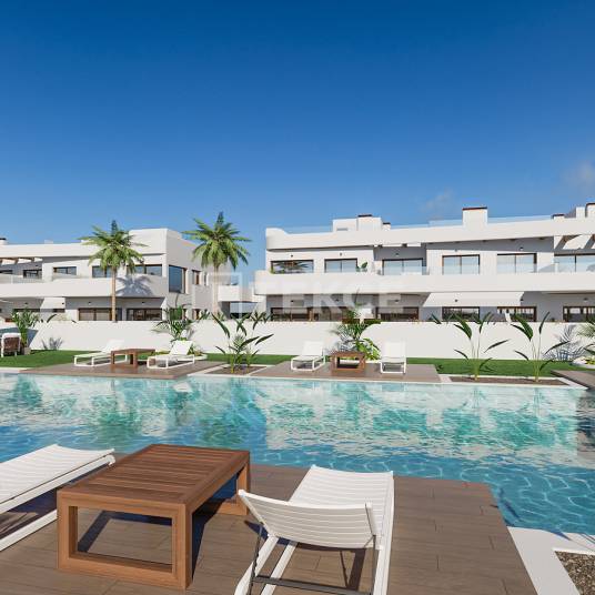 Lichte en stijlvolle golfflats met 2 slaapkamers en 3 slaapkamers in Los Alcazares Costa CalidaLos Alcázares kan een erg leuke plek zijn om te wonen, vooral voor degenen die een levensstijl aan de kust en een ontspannen, mediterraan klimaat op prijs stellen. De stad geniet van milde winters en hete zomers, met veel zon het hele jaar door, waardoor het ideaal is voor buitenactiviteiten. Dankzij de ligging aan de Mar Menor hebben bewoners gemakkelijk toegang tot prachtige stranden en een verscheidenheid aan watersporten. De stad biedt een langzamer levenstempo, wat aantrekkelijk is voor mensen die willen ontsnappen aan de drukte van grotere steden. Goede toegang tot gezondheidszorgdiensten, waaronder lokale klinieken en ziekenhuizen in nabijgelegen steden. Een verscheidenheid aan lokale winkels, supermarkten en restaurants komen tegemoet aan zowel lokale als internationale smaken. Los Alcázares is waarschijnlijk een prachtige plek om te wonen voor degenen die het klimaat, de kustomgeving en de ontspannen levensstijl op prijs stellen. Het is vooral aantrekkelijk voor gepensioneerden, externe werknemers en mensen die op zoek zijn naar een rustige maar actieve omgeving. Potentiële bewoners moeten echter rekening houden met de seizoensvariaties, de lokale arbeidsmarkt en het belang van het leren van Spaans om optimaal van het leven in deze charmante stad te kunnen genieten.Dankzij hun toplocatie bieden de appartementen te koop in Los Alcázares gemakkelijke toegang tot de dagelijkse gemakken. Ze liggen op slechts een korte loopafstand van de lokale voorzieningen, 2 km van het charmante strand Playa de la Concha, 2,2 km van de groene 18-holes golfbaan La Serena, 13 km van het bruisende winkelcentrum Dos Mares, 22 km van de luxe cruisehaven van San Pedro, en slechts 34 km van de internationale luchthaven van Murcia.Gelegen in een ongelooflijk gewilde omgeving, maken deze appartementen deel uit van een wooncomplex met een ruime gemeenschappelijke ruimte, compleet met een groot zwembad en groene groene ruimtes.Deze appartementen bieden de keuze tussen twee of drie slaapkamers met inbouwkasten en twee badkamers, waarvan één en-suite bij de hoofdslaapkamer. Ze beschikken over een ruime woonkamer met grote ramen die uitkomen op het balkon/zonneterras en een open keuken. RMU-00221