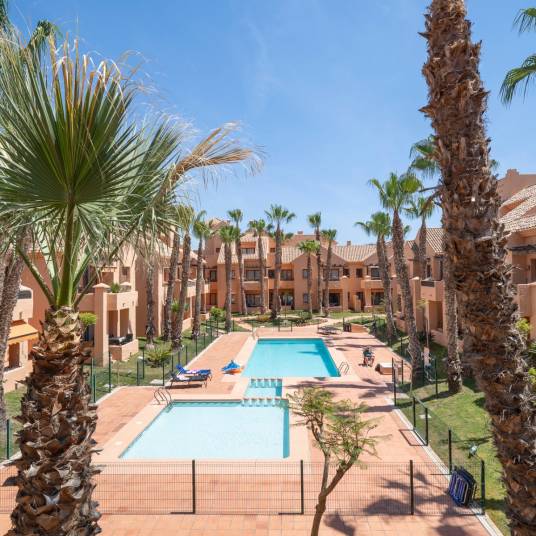 This exclusive 3-bedroom penthouse duplex is located in the prestigious Nueva Ribera Beach Club urbanization, right on the front line of the best beach in Mar Menor. With a built area of 97.78 m² spread over two floors, this property offers the perfect combination of comfort, style, and a privileged location.On the main floor, there is a bright and spacious living-dining room with access to a balcony overlooking the communal pool, a fully equipped independent kitchen, a full bathroom, a secondary bedroom, and a master bedroom with access to another balcony facing the landscaped communal pool area.The upper floor features an additional bedroom, a full bathroom, a convenient storage room, and a large private solarium terrace, ideal for relaxing outdoors and enjoying the Mediterranean climate year-round.The property includes a garage space and storage room in the price. It stands out for its excellent quality finishes: armored front door, white lacquered interior doors, and high-quality built-in wardrobes.The gated urbanization offers extensive green areas, a communal swimming pool, and 24-hour security surveillance, all within a peaceful and secure environment just steps from the sea, allowing you to enjoy sun, beach, and a unique lifestyle on the Mar Menor.