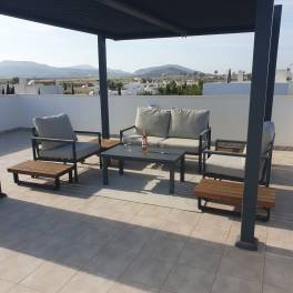 De buitenruimtes zijn echt het aanzien waard, het penthouse heeft een dakterras van 114m², buitenkeuken en twee lamellen percula`s. Met een spectaculair uitzicht over de mar menor, en de prachtige bergen.