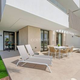 De afwerking is van hoogstaande kwaliteit, met oog voor detail en gebruik van duurzame, onderhoudsvriendelijke materialen zoals kunstgras op het terras. De keuken is volledig ingericht met moderne apparatuur, en het hele appartement beschikt over geïntegreerde airconditioning voor een aangenaam binnenklimaat, het hele jaar door. Dankzij de gelijkvloerse ligging geniet u van een directe verbinding met de tuin en het zwembad – waardoor u op elk moment van de dag kunt ontspannen in uw eigen privéparadijs.