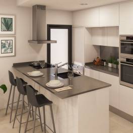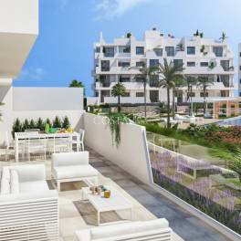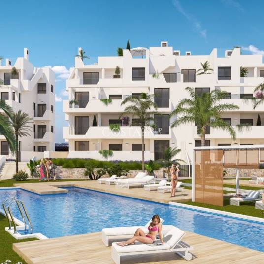 Nieuwbouw wooncomplex heeft 60 appartementen verdeeld over 4 blokken met terrassen voor de begane grond, eerste en tweede verdieping, gemeenschappelijk zwembad, verwarmd zwembad en solarium met zomerkeuken op de penthouses, om alle uren van de zon te genieten elke dag van het jaar.
