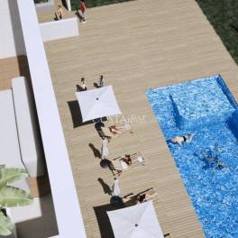 Dit exclusieve project beschikt over acht stijlvolle appartementen, elk met 3 slaapkamers en 2 badkamers. De woningen zijn ontworpen voor modern wonen en beschikken over ruime terrassen, privétuinen of solariums om te voldoen aan verschillende levensstijlwensen. Het gebouw heeft ook een commerciële ruimte op de begane grond en een prachtig zwembad op het dak (eerste verdieping) voor ontspanning en entertainment.