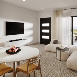 Gelegen in de charmante plaats op een steenworp afstand van de zee, biedt dit wooncomplex een exclusieve selectie van woningen, ontworpen voor degenen die op zoek zijn naar een comfortabele en moderne levensstijl. Elk is zorgvuldig gepland om comfort en functionaliteit te maximaliseren. De nabijheid van de zee, op slechts 300 meter, maakt het mogelijk om te genieten van de zeebries en spectaculaire uitzichten, waardoor elke dag een unieke ervaring wordt. De typologie van de woningen omvat zowel hoge bungalows met solariums als lage met tuin, beide met patio’s, die opties bieden voor verschillende voorkeuren en behoeften.De buitenruimtes van deze bungalows zijn ontworpen om de natuurlijke omgeving van Mazarrón aan te vullen. Elke woning heeft een privétuin, ideaal om te genieten van momenten in de buitenlucht in een rustige en ontspannende sfeer. Bovendien maken de ruime terrassen het mogelijk om optimaal te profiteren van het mediterrane klimaat, en bieden ze een perfecte ruimte voor entertainment of gewoon om te ontspannen. Het solarium is een ander van de opvallende attracties, dat een extra plek biedt om te genieten van de zon en het panoramische uitzicht op de omgeving.Het interieur van de bungalows is ontworpen met een focus op kwaliteit en comfort. De vloeren van porseleinen tegels geven een vleugje elegantie en duurzaamheid, terwijl elektrische rolluiken een extra niveau van comfort bieden. Ingebouwde kasten zorgen voor efficiënte opslag, waardoor de ruimtes netjes en functioneel blijven. De voorinstallatie van airconditioning zorgt ervoor dat het binnenklimaat altijd aangenaam is, ongeacht het seizoen. Elke bungalow beschikt over twee slaapkamers en twee badkamers, wat voldoende ruimte biedt voor gezinnen of koppels die op zoek zijn naar een gezellig huis. De indeling omvat ook een garage, die comfort en veiligheid voor de voertuigen garandeert.Afsluitmuren behouden de privacy van elke woning, die met elkaar verbonden zijn door brede voetgangerspaden met directe toegang tot de straat.