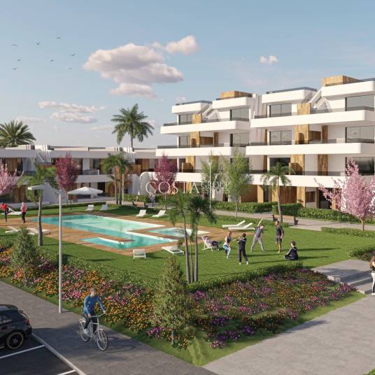 Gelegen in het prestigieuze Condado de Alhama, biedt dit wooncomplex een exclusieve selectie van 21 eigendommen, waaronder appartementen, begane grond en penthouses. Ontworpen voor degenen die een perfecte balans zoeken tussen comfort en functionaliteit, is elke woning uitgerust met moderne kenmerken en hoogwaardige afwerkingen. De locatie is ideaal voor golfliefhebbers, aangezien het slechts 1 km van de dichtstbijzijnde golfbaan ligt en 41 km van de luchthaven, wat de toegang vergemakkelijkt voor zowel bewoners als bezoekers.BUITENRUIMTESDe eigendommen beschikken over buitenruimtes die zijn ontworpen om te genieten van het mediterrane klimaat. Elke woning heeft een terras, ideaal om buiten te ontspannen. De begane grond biedt privé-tuinen, terwijl de penthouses een solarium bevatten, wat extra ruimte biedt voor vrije tijd en ontspanning. Bovendien hebben alle eigendommen toegang tot een garage, wat comfort en veiligheid biedt voor de voertuigen van de bewoners.BINNENRUIMTESHet interieur van de woningen is ontworpen met een focus op comfort en functionaliteit. De vloeren van porseleinen tegels geven een vleugje elegantie en duurzaamheid. De keukens zijn uitgerust met moderne apparatuur en inbouwkasten bieden efficiënte opslag. De voorinstallatie van airconditioning zorgt ervoor dat het binnenklimaat altijd aangenaam is. De indelingsopties omvatten woningen met 2 en 3 slaapkamers, allemaal met 2 badkamers, aangepast aan verschillende gezinsbehoeften.GEMEENSCHAPPELIJKE RUIMTESHet wooncomplex biedt een verscheidenheid aan gemeenschappelijke ruimtes die de woonervaring van de bewoners verrijken. Sportliefhebbers kunnen genieten van padel- en tennisbanen, evenals een gemeenschappelijke fitnessruimte. De aangelegde gebieden bieden een groene en rustige omgeving, perfect voor ontspannende wandelingen. Het gemeenschappelijke zwembad is ideaal om af te koelen tijdens warme zomerdagen en wordt een ontmoetingspunt voor de gemeenschap.