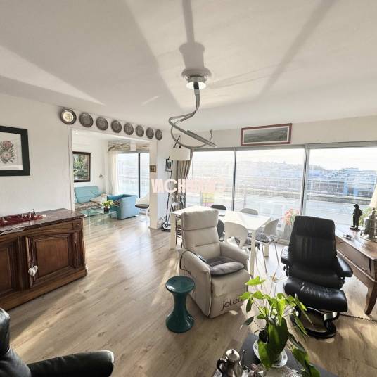 Exclusivité chez Vacherand Immobilier :Superbe appartement situé au 5éme étage (avec ascenseur) de la résidence SAINT PIERRE II dans un secteur recherché. Belle résidence sécurisée et bien entretenue.D’une superficie habitable de plus de 120m², vous allez être séduit par la luminosité et la vue dégagée sur le port et la mer.Il est composé comme suit :- Beau salon séjour de 40m² avec baies vitrées donnant sur un balcon filant.- Une cuisine aménagée et équipée ( avec petite arrière cuisine).- Trois chambres.- Deux salles d’eau.Il bénéficie de nombreux rangements et dressing.Possibilité de séparer en un appartement et un studio ( deux accès sont existants)Enfin, l’appartement est vendu avec un emplacement de parking intérieur et trois caves.A VISITER !!Copropriété de 143 lots dont 72 d’habitationsCharges mensuelles : 235€Pas de procédure en cours