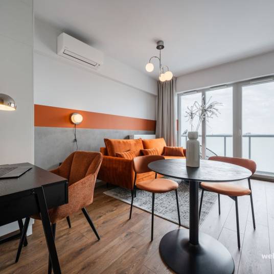 De woning kan worden afgewerkt als een verhuurklaar investeringsappartement. Het appartement is uitgerust met centrale verwarming en airconditioning. Het beschikt over een balkon van 4 m² met een noordwestelijke ligging. De woning wordt verkocht in de standaard van de ontwikkelaar, zoals te zien op de foto, en moet nog worden afgewerkt, wat al in de prijs is inbegrepen. Het bedrijf Wellcome Home is verantwoordelijk voor het hele proces – van ontwerp, uitvoering van de bouw tot het aanbrengen van de afwerkingsdetails. De foto’s verwijzen naar het uiteindelijke ontwerp (reeds uitgevoerd voor een andere investeerder).