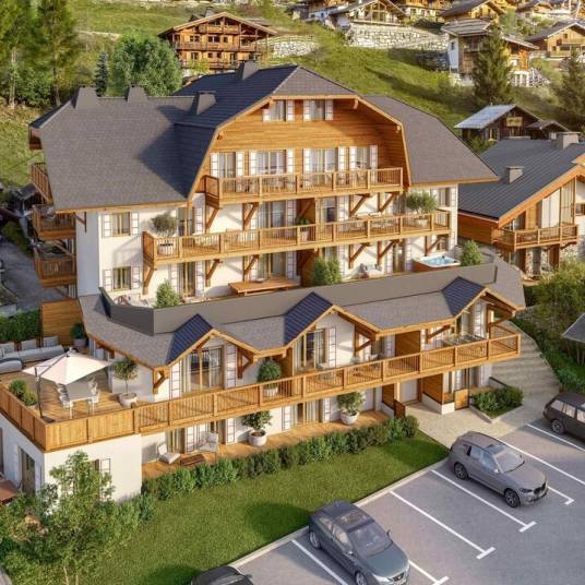 In a great location away from the crowds of the centre, this brand new renovation of an old hotel is set on the hillside overlooking the village of Morzine below. Comprising 18 brand new properties the development will include two chalet residences and an individual chalet. On the sunny side of the resort with views toward Pleney and Pointe de Nyon, this 4 bedroom apartment will enjoy a interior surface of 129m2 on the first floor. Just 400m from the Super Morzine Cable Car and only 6 minutes to the centre of Morzine, you could not be better positioned.Being built by an experienced developer, the exteriors will utilise traditional architecture, blending Larch wood and natural stone and each property will enjoy its own private spacious outdoor terrace or balcony. Inside apartments will come with complete kitchens including Bosch appliances, underfloor heating, parquet flooring in the bedrooms and wood panelling in living areas and bedrooms.Each property includes a private cellar and ski locker. Parking spaces both underground and exterior are available to purchase at an extra cost. Please ask for more details.Due to the depth of the renovation, notary fees are reduced at 2 – 2.5% and for those that wish to rent their property when not using it, there is the possibility to reclaim the VAT at 20% at the end of construction. Please ask for more details on this.With Morzine property for sale so difficult to find that is close to everything, this is what makes this development so interesting. For more information, floor plans, latest availability and to arrange a visit, please contact us.