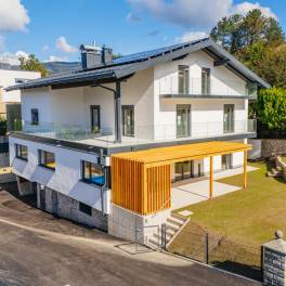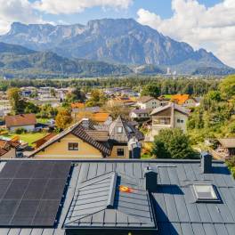 Modern DAKAPPARTEMENT in PuchOp een zonnige zuidwestelijke ligging op een heuvel met een indrukwekkend panoramisch uitzicht over Puch bei Hallein wacht deze uitzonderlijke 3-kamer bovenwoning op je. Het aangename wooncomplex met slechts 3 wooneenheden combineert privacy met het hoogste wooncomfort op nieuwbouwniveau. Het hele gebouw is in 2025 volledig gerenoveerd volgens de nieuwste technische en energienormen.De ongeveer 112 m² woonoppervlakte van dit stijlvolle appartement op de bovenste verdieping maakt indruk met zijn royale kamerindeling, hoogwaardige meubels en lichte, open woonruimtes.Je komt de flat binnen via de uitnodigende ontvangstruimte met garderobe. Een vriendelijke kinderkamer/kantoor/gastenkamer met aangrenzende zolderruimte – ideaal als inloopkast – biedt flexibele gebruiksmogelijkheden. Een praktische berging biedt extra opbergruimte voor dagelijks gebruik.Het middelpunt van de flat is de woon- en eetruimte van 40,92 m² met open keuken. Hier smelten koken, eten en wonen samen tot een perfect geheel. Vanuit de woonkamer heb je toegang tot een gezellig balkon – ideaal voor privémomenten in de frisse lucht.De grote badkamer is modern en elegant met een gelijkvloerse douche, stijlvolle tegels en hoogwaardig sanitair. De ruime slaapkamer biedt een rustig toevluchtsoord en comfort.Alle woon- en slaapkamers zijn voorzien van exclusieve eikenhouten parketvloeren. De badkamer en het toilet worden gekenmerkt door hoogwaardige tegels en ultramodern sanitair.Afhankelijk van het seizoen kan de vloer worden verwarmd of gekoeld via een energiezuinige luchtwarmtepomp. Bovendien voorziet het 15 kWp fotovoltaïsche systeem de gemeenschappelijke ruimte en het verwarmingssysteem van klimaatvriendelijke zonne-energie.De badkamer, wc en berging hebben een luchtafvoersysteem.De ruime kelderruimte biedt extra opslagruimte. Je kunt je auto parkeren in je eigen carport (tegen betaling) of op de buitenparkeerplaats.Doordachte voorbereidingen voor kabeltelevisie, radio, geluidsinstallatie en internet en verlichting zijn in elke woonkamer aanwezig.Het ruime keldercompartiment biedt je extra opbergruimte. Je kunt je auto parkeren in je eigen carport (tegen betaling) of op de buitenparkeerplaats.Geplande oplevering: eind herfst 2025PUCH: MEER LEVENSKWALITEIT IN EEN GROENE OMGEVING DICHT BIJ HET STADSCENTRUMRustig en toch centraal gelegen, kun je gemakkelijk te voet naar het centrum van Puch bei Hallein met scholen, kinderopvang, medische voorzieningen, winkels en restaurants. Op slechts negen kilometer van de stad Salzburg, met een snelle verbinding via de snelweg en een halte van de S-Bahn, woon je midden in de natuur en toch dicht bij de infrastructuur van de stad – een onverslaanbare combinatie.