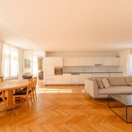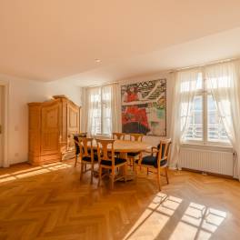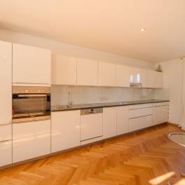 Charmant appartement in een oud gebouw met een frisse uitstraling in de gewilde wijk AndräviertelOp slechts een paar minuten lopen van paleis Mirabell, te midden van een unieke verzameling prachtige oude gebouwen, wacht je een woning van een klasse apart. Dit historische pand werd in 1924/1925 ontworpen en gebouwd door een architect uit München. Het is liefdevol gerestaureerd en straalt nu in nieuwe pracht en praal met ultramoderne faciliteiten. De erkers, filigraan decoratieve elementen en de gedraaide hoekpilaren op de gevel, die kenmerkend zijn voor het uiterlijk van het gebouw, zijn behouden gebleven en benadrukken op indrukwekkende wijze de flair van een klassiek oud gebouw.Het te koop aangeboden appartement heeft 89,56 m² woonoppervlak, dat praktisch verdeeld is in een entree met garderobe, gastentoilet en berging, van waaruit de woonkamers toegankelijk zijn. De grote en luchtige woonkamer, keuken en eetkamer vormen het centrum van dit dromerige appartement boven de daken van Salzburg. Een elegante slaapkamer met uitzicht op de binnenplaats grenst hieraan en wordt gecompleteerd door een moderne badkamer met daglicht.Bij de inrichting van de kamers is veel waarde gehecht aan hoogwaardige materialen:- Moderne en toch klassieke inbouwkeuken- Praktische ingebouwde verlichting (sommige met bewegingsmelders)- Vloerverwarming- Edele en duurzame kersen parketvloer in een elegant visgraatpatroon- Moderne badkamersVeel ramen en de ligging op de 4e verdieping creëren een vrij en uniek woongevoel. Je woont hier niet alleen, je woont hier – in het centrum van de stad, in je eigen oase van rust boven de daken van Salzburg!Het pand ligt in de populaire wijk Andräviertel in Salzburg, dicht bij het stadscentrum. Hier domineren de vele prachtige en goed bewaard gebleven oude gebouwen het stadsbeeld en benadrukken ze de onmiskenbare charme van deze prachtige traditionele stad in het Salzburger Land. Dankzij de nabijheid van het centrum bereik je de prachtige oude binnenstad met zijn smalle, schilderachtige steegjes, gezellige cafés en de beroemde Getreidegasse in ongeveer 10-15 minuten te voet. Slenteren en winkelen zonder te zoeken naar een parkeerplaats – DAT is een echte zeldzaamheid in Salzburg, en dat wordt gegarandeerd door de perfecte locatie in het Andräviertel.Bovendien zijn alle dagelijkse benodigdheden op loopafstand: Artsen, boetieks, lokale leveranciers of het treinstation – het Andräviertel is niet alleen charmant, maar ook praktisch.Ondanks de locatie in het stadscentrum zijn er hier ook idyllische plekjes om je terug te trekken. Fiets langs de nabijgelegen Salzach, maak een wandeling op de Kapuzinerberg of geniet van het prachtige park van paleis Mirabell, waar je niet alleen heerlijk kunt wandelen maar ook rustige en schaduwrijke plekjes kunt vinden om te genieten en te vertoeven.Het nabijgelegen Paracelsus Bad, inclusief een saunalandschap met overloopzwembad en prachtig uitzicht over de stad, is ideaal om te zwemmen en te ontspannen.