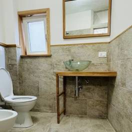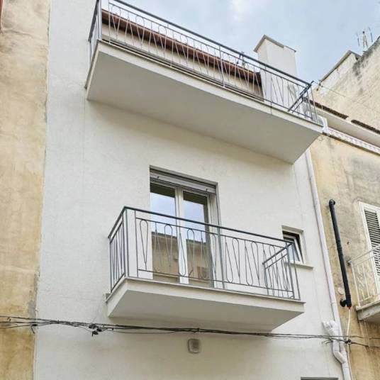Casa Maurizio – AlcamoLess than forty minutes by car from both Palermo and Trapani airports, Casa Maurizio is a practical and affordable two-bedroom home just fifteen minutes’ drive from the beach. In the characterful streets of the historic centre of Alcamo, it offers plenty of internal space and very convenient access to all local amenities.Renovated to a very impressive standardThe building has been entirely renovated, and is now empty, ready for immediate occupation once a kitchen has been installed and the place furnished. The restoration work has been done to a very high standard, using top quality materials, and fully certified.This work includes a brand new roof whose natural wooden beams have been left exposed on the top floor, giving a rustic charm to a town centre home. New parquet floors have been on the upper two levels of the three-storey property. The bathrooms are sparkling and stylish, with glass sinks, lovely tiling and wooden finishes. Wood has also been chosen for the windows, which are freshly installed, and the shutters which offer privacy as well as blackout and cool in the hot Sicilian summers.Lastly, the electrical and water fittings have been re-done, and the kitchen is fully ready for all the arrival of all the cooking and storage appliances you will need.Over 100m2 of living spaceThe layout is a simple one, with a long corridor running along one side of the building and staircases above this. The first floor then comprises a bedroom, which is currently more of a garage space. A large rug on the colourful marble tile floor and some warm colours on the wall, however, and you will have a large and welcoming bedroom. There is a small box room to the rear that would make a great walk-in wardrobe, and even an en-suite WC. Alternatively this space could be a games room, large home office or even an independent studio apartment.On the first floor there are two small rooms, one of which opens onto a street-front balcony. The top level has the kitchen integrated into a generous living room with extra wide sliding doors out onto the terrace. There are bathrooms with showers on each level.For a full description of the property please visit our website